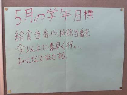ウォークラリーの表彰式とともに、各学級の代表より5月のクラス目標および学年目標が発表されました。
