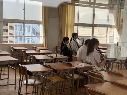 吹奏楽部は各教室でパート練習中です♪集中しているので中に入らず廊下からの写真です。