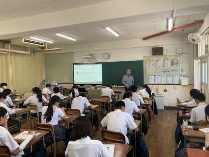 今日(28日)は1限から5限までクラスごとにキャリア教育の一環として「トランプセミナー」を行なっています。