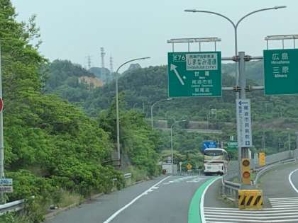 しまなみ海道に入っています。海がちらほら見えだしました。