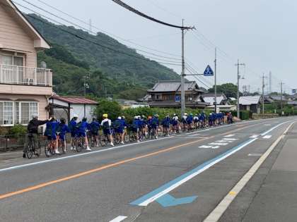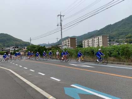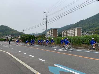 サイクリングスタートしました。クラスごとに1列で走ります。