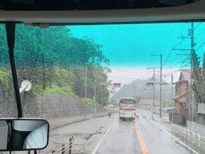 予定通りホテルを出発しました。松山市中心部に向かっています。雨がしとしと降っています。