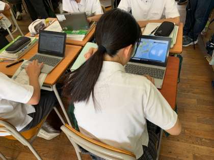 本日2年生社会科で研究授業を行いました。地理の縮尺の単元を国土地理院のGSIマップを使い、子どもたちは興味津々でした。