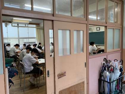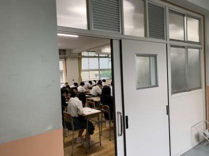 修学旅行とその代休も終わり、本日(3日)は第1回目の実力テストです。あいにくの雨で少し湿気が多いですが集中して受けています。