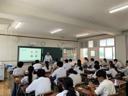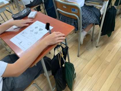 本日は3年生でトランプセミナーをしていただいています。自分の性格を分析中です。