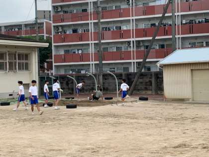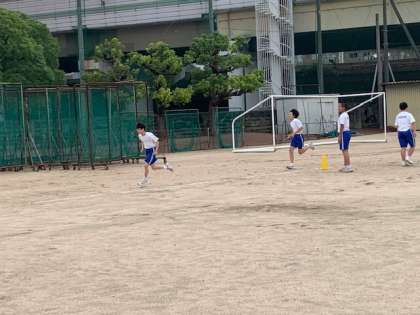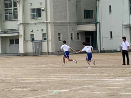 男子は陸上競技、リレーや走幅跳をしています。曇りでちょうど良い感じです。
