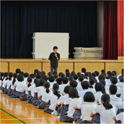今日の講話は震災についてでした。昨日実施した地震・津波を想定した避難訓練を踏まえて、東日本大震災にまつわる話を2つ紹介されていました。