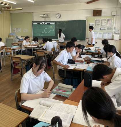 1組は理科、2組は社会、3組は美術、4組は数学、5組は国語です!みんな暑い中頑張ってます!保護者の皆様も暑い中、ご来校いただき、ありがとうございます!