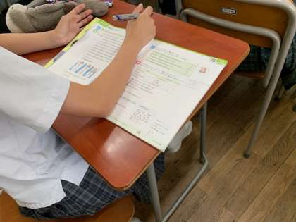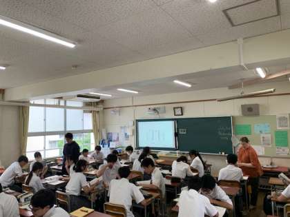 3年生英語の授業です。C-NETの先生も入ってくれています。ペア学習もしっかりやっています。