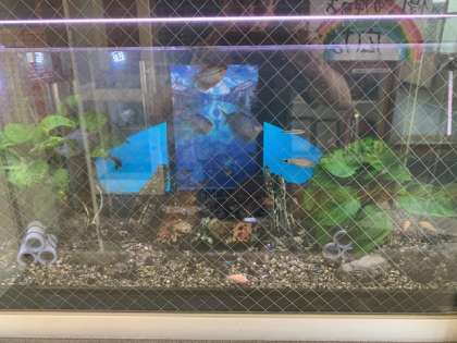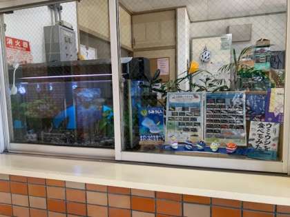 管理作業員室前の水槽デコレーションが7月バージョンに変わっています。今月は「ウミウシ」の特集です。