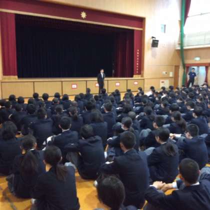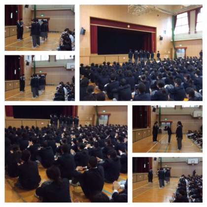 中学校は君たち生徒が主役です。今、生徒会役員。学級委員の代表に認証状をお渡ししましたが、みんなで力を合わせて素晴らしい八阪中学校を築いていってください。今日から雨の中3年生の有志で、熊本地震への募金活動も始めてくれています。何かできることをやろうという気持ちが大切です・・・