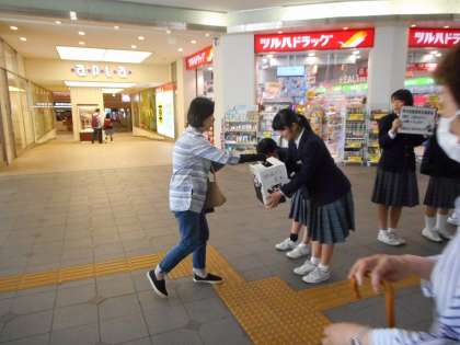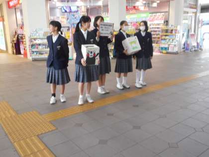 今日13日(金)の放課後に、地域の阪神野田駅とJR福島駅において、街頭募金を行いました。代表の生徒が呼びかけを行うと、早速善意の募金をしてくださる方々があふれました。ありがとうございます。