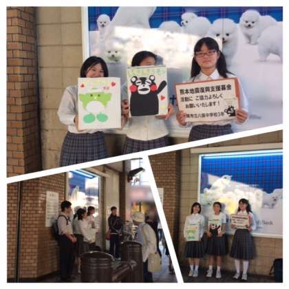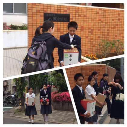 5月9日から始めた募金活動、多くの3年生がボランティアとして力を合わせ2週間活動することができました。今なおたくさんの方々が避難所で過ごしておられたり、復興まではまだまだ大変だと思います。私たちにできることは、小さなことでも少しでも励ましになればと始めさせていただいた募金活動でした。多くの方々の善意をしっかり受け止め、集まった募金を日本赤十字社等を通して寄付させていただきます。