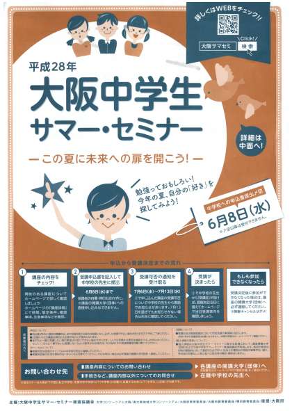 平成28年度大阪中学生サマー・セミナーの案内を配布しています。