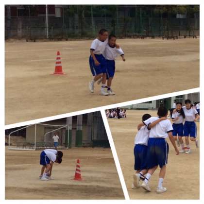 5時間目に1年生は学年競技の練習に取り組みました。2人3脚、3人4脚、4人5脚で息を合わせる練習です。