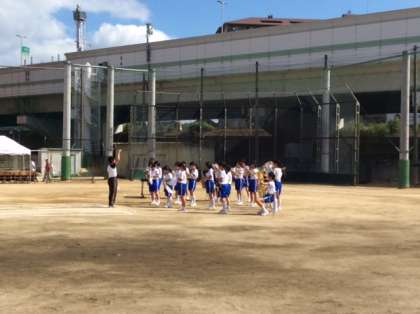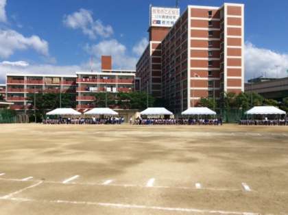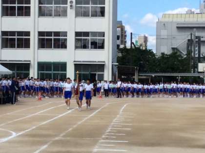 応援席への集合もスムーズです。今年は、音楽部の演奏による入場行進、開会式のセレモニーが行われます。初めて音楽部の演奏で行進をしましたが、力強い演奏のおかげで堂々とした入場行進です。明日の本番が楽しみです。