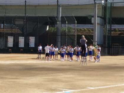 上田教頭先生の開会宣言。雲一つない青空です。