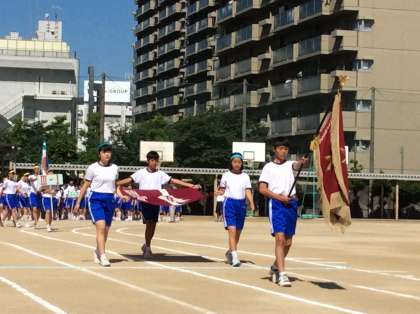 生徒会先頭で、校旗を持って堂々の入場行進です。