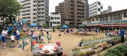 グランドへ出てきて一緒に遊びまわります。園児たちのエネルギッシュな動きに中学生は戸惑いがちです。