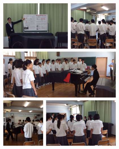 教育実習期間が、今週末までとなりました。6月15日(水)1限目に社会科の森さんが1年2組、4限目に音楽科の加茂さんが2年3組で、それぞれ研究授業を行いました。大学から教授先生もお見えになって、少し緊張しながらの授業でした。