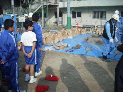 11月18日(月)の5、6時間目を使って、1年生の防災訓練を行いました。毎年本校の1年生を対象におこなっています。