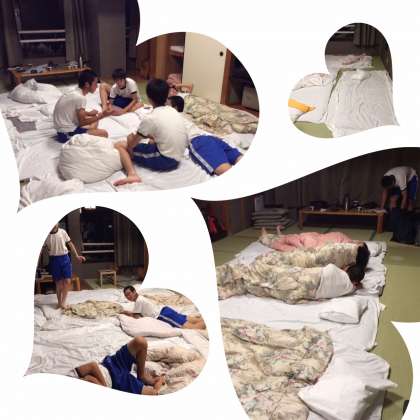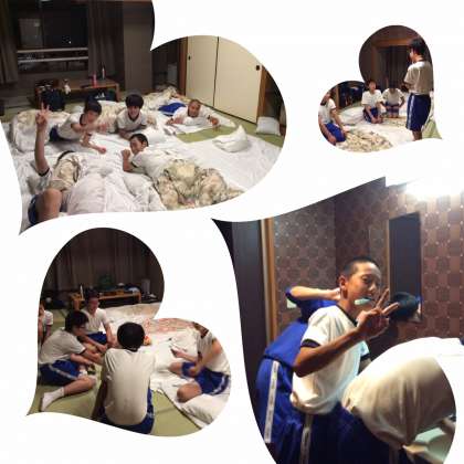修学旅行1日目の夜を迎えます。ふとんを敷いて、歯磨きをして、ボチボチ就寝準備です。おやすみなさい。