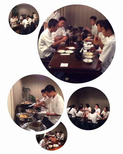 熱々のチャンポンがテーブル上に、あとは自分の好きな中華をチョイスします。市内散策で疲れ、お腹が空いててとても美味しいです。
