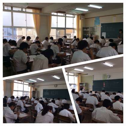 期末テスト2日目です。1学期のまとめとしても大事なテストです。生徒たちは、いつもながら真剣に受験しています。日頃の努力の成果が発揮出来るよう、落ち着いて頑張っています。