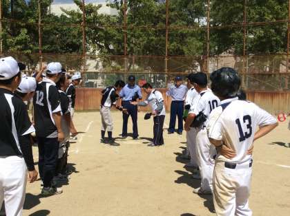 1回戦、対海老江東小学校です。追い上げる展開になり、サヨナラ勝ち目前。残念ながら、8-8の同点引き分けになりました。
