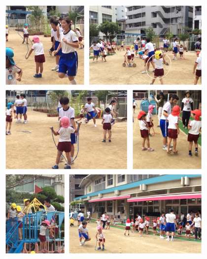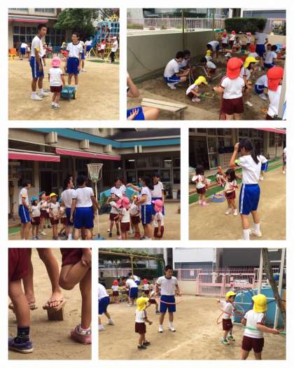 子どもたちは遊びの天才。いろいろな遊び道具を使って、中学生にアプローチしています。後半は、中学生が少し疲れ気味?!