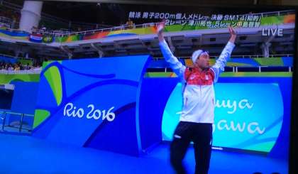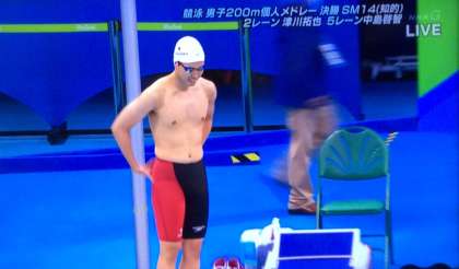 2016リオパラリンピック競泳、最終日に200m個人メドレー決勝が行われました。第2レーンに津川選手、第5レーンに中島選手が出場。がんばれ!津川先輩!両手をあげての堂々とした入場です。