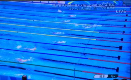 がんばれ! 津川先輩!得意の背泳ぎでペースをつかみ、後半勝負です。メダル目指してがんばれ!