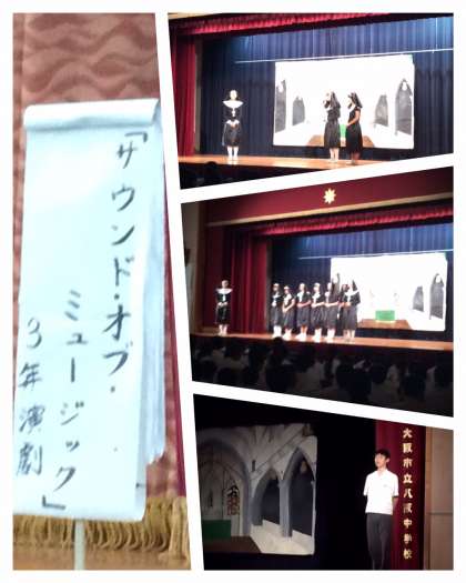 「ドレミの歌」や「エーデルワイス」などの名曲で有名なミュージカルを3チーム合同で上演します。演劇チーム(30名)は全員「せりふ」ありで演技や歌を、音楽チーム(15名)は楽器の生演奏やコーラスを、裏方チーム(35名)は背景・衣装・小道具・照明などを担当します。題名の「サウンド・オブ・ミュージック」の曲も合唱します。おなじみの歌を口ずさみながら、3年生のすばらしいハーモニーを楽しんでください。