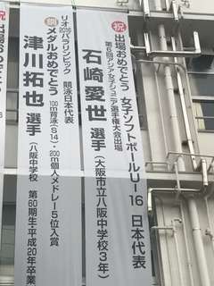 もう一つは、石崎愛世さん(3−4)が女子ソフトボールUー16日本代表に選ばれ、第6回アジア女子ジュニア選手権大会に出場を応援するものです。本校の先輩や現役の生徒の活躍は、大変喜ばしいことです。石崎さんがんばれ!