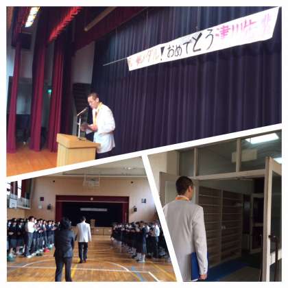 校長先生より、津川選手の紹介をしていただいた後、津川選手ご本人からメッセージを読み上げていただきました。