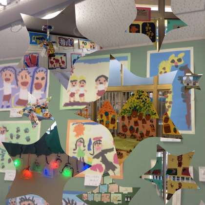 12月2日(金)、保育実習等でお世話になったり、体育大会に来校してもらったりと幼中連携をしている貫江田幼稚園のキッズフェスティバルがありました。見学に行ってきましたが、子どもたちの自由な発想や表現方法がとても楽しく、笑顔になる作品がいっぱいありました。