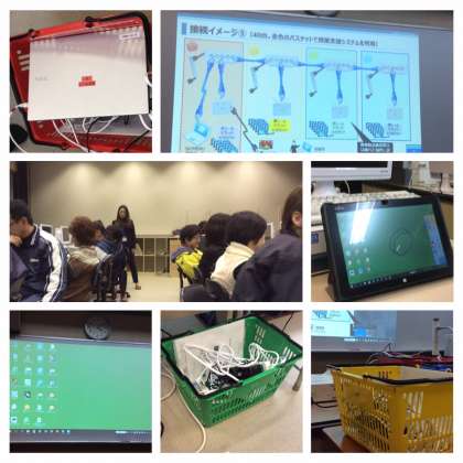 1月16日(月)の放課後、パソコン教室で教員対象のタブレット研修会を実施しました。大阪市ではICT機器を利用した教育を推進しています。学校によって校内のLAN環境が違っており、本校はPLC校ということで授業用パソコンを基幹サーバーとして利用するシステムになります。タブレットを10台ずつセットして、赤・青・黄・緑の授業支援バスケットと組み合わせることで教室での使用が可能となります。