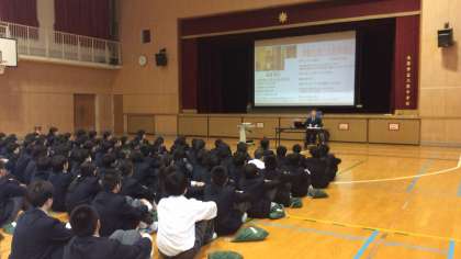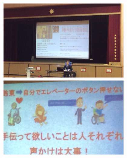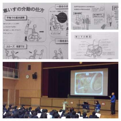 平成29年2月6日(月)6限目、体育館において福祉体験学習の一環として、車いすでの生活をされている鈴東(すずひがし)さんからお話をお聴きしました。