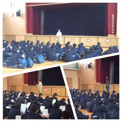 いよいよ明日(3月9日)、公立高校の一般選抜入試を迎えます。6時間目に受検する生徒は体育館へ集合し、事前指導を行いました。