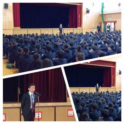 入学式でも話をした、1.笑顔であいさつ 2.自分を大切に 3.常にやる気を持つ この3つを大切にして新学期をスタートしてほしい・・・そこから、今年の目標である「ハッピー大作戦」に結び付けていきましょう。みんながハッピー指数を上げ、八阪中学校全体を盛り上げましょう。・・・先生方はやる気満々です!でも、学校の主役は君たちです。生徒一人一人が頑張ることが大切です。生徒会が中心となって素晴らしい八阪中学校を作り上げましょう。・・・