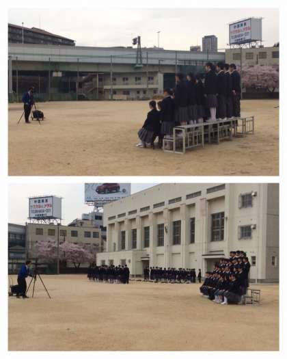 始業式後、1年生から順番に学級写真の撮影を行いました。