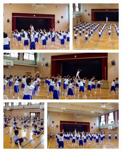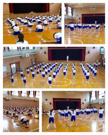 平成29年5月10日(水)、1時間目(1年3・4組)・2時間目(1年1.2組)、校長先生のラジオ体操指導の最終日です。2・3年生に比べると、1年生は身体を上手に操れない生徒が見かけられますが、ポイント指導を受けることで見違えるようになっていきます。ラジオ体操をきっちりやれば、柔軟性も得られるというお話もあり、握りこぶし2つの上におでこを乗せることができるのかという、柔軟度チェックもありました。今日習ったことを、いつも考えながら継続できるかどうかが、重要です。
