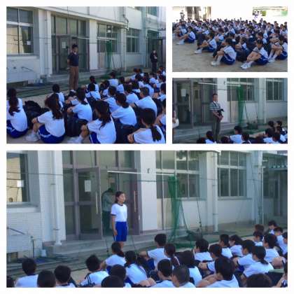 出発式です。代表生徒が司会進行をします。吉田教頭先生より、雲一つない青空の下、みんなと一緒に一泊移住に行けることをとても楽しみにしています。・・・