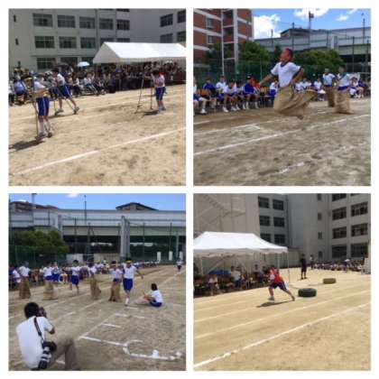 竹馬、縄跳び、袋、タイヤ。お楽しみグッズをいかに上手く使いこなせるか競います。それにしても‥竹馬に乗っている子を久しぶりにみました。まさか家に袋があるわけでもないだろうに自分の身体の一部のように使いこなす名手が現れたり‥。なかなか楽しみいっぱいの競技でした。