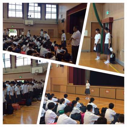 続いて、生徒代表の挨拶です。中学生最後の修学旅行を思い出に残る素晴らしいものにしましょう!