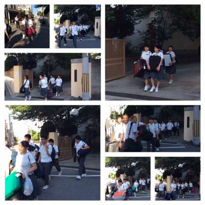 他学年の多くの先生方が見送っていただく中、学校を出発しました。