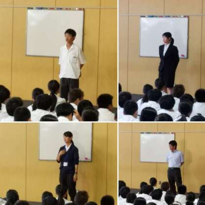 今日はその他に、学年主任の先生と実習期間もあと2日となった教育実習生からのお話を聞きました。