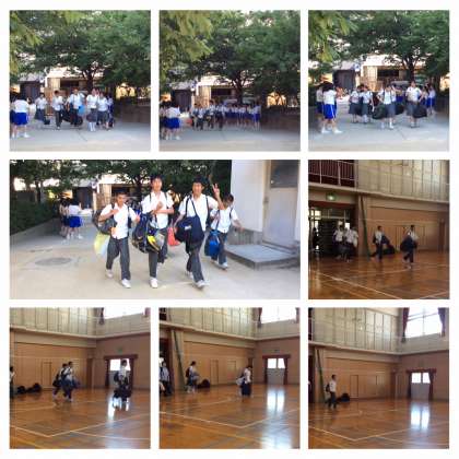 道路事情も順調で、予定より少し早く帰校出来ました。他学年の多くの先生方と下級生にお出迎えをしていただき体育館へ。