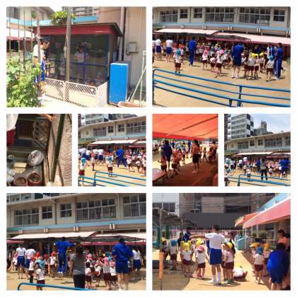 最後は、みんなでカエルの体操。中学生のジャンプに園児は興奮してました。