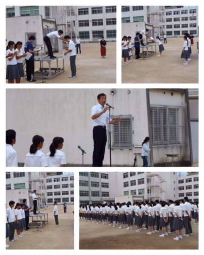 平成29年9月4日(月)、一気に秋の気配が感じられる爽やかな朝になりました。いつも通り時間前に集合完了。生徒会の司会で全校集会が始まります。「おはようございます!」